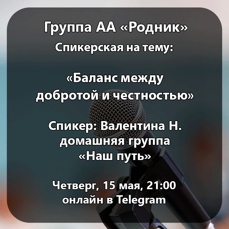 🔔 ГРУППА АА РОДНИК ПРИГЛАШАЕТ НА СПИКЕРСКУЮ В TELEGRAM ОНЛАЙН
